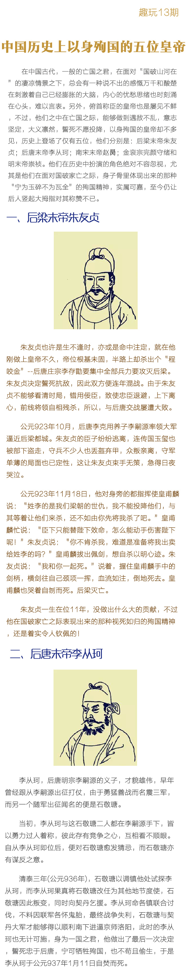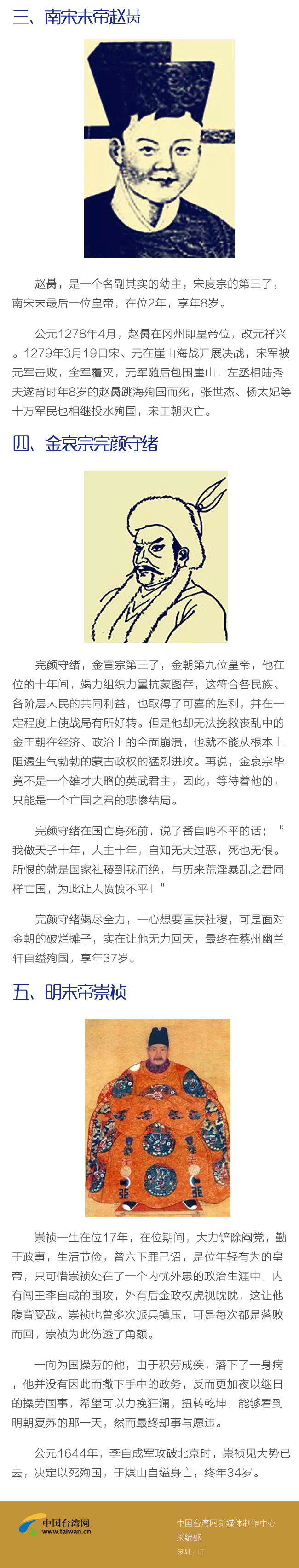 【趣玩13期】中国历史上以身殉国的五位皇帝