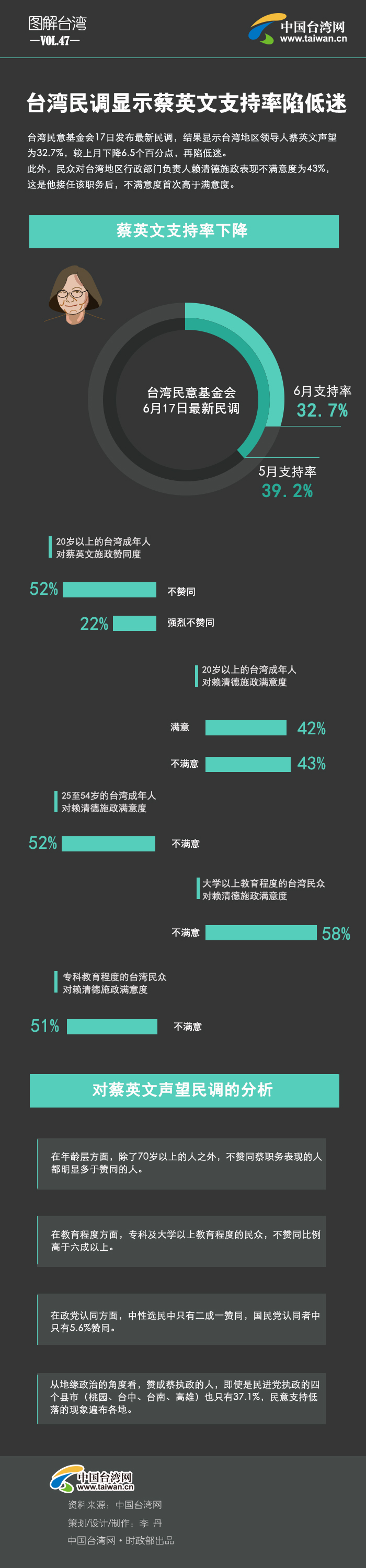 【图解台湾】台湾民调显示蔡英文支持率陷低迷