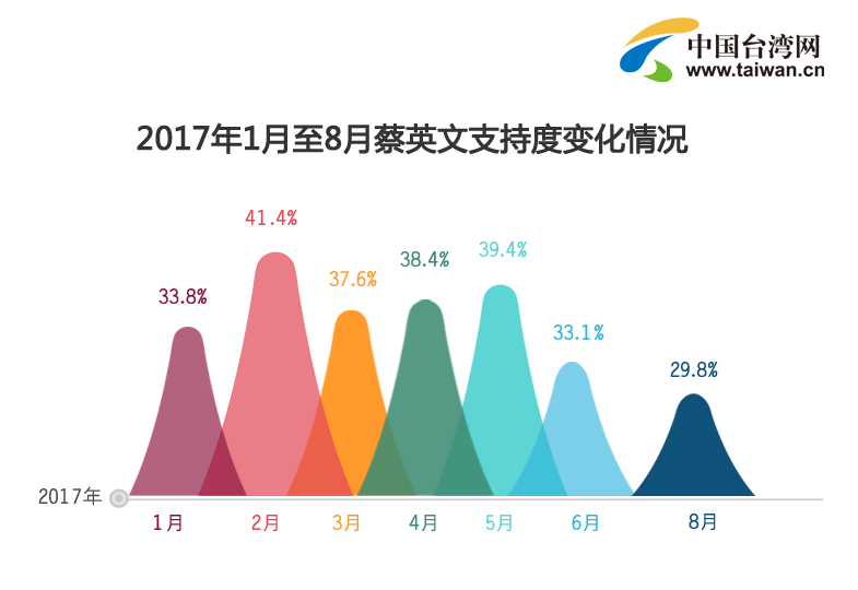 2017年1月至8月蔡英文支持度变化情况。(中国台湾网发)
