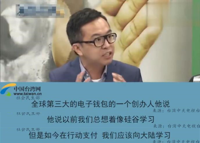 该节目中另一位嘉宾表示,行动支付在大陆如火如荼,它不是未来式而是现在进行式,作为一个无现金社会的技术或平台“我们必须要面对和接受”。所以现在不是管制它,而是要接受、让它松绑,所以说现在这个包含之前的共享经济台湾都落后,“金管会”顾立雄上来,这部分至少要帮台湾开创一条生机。