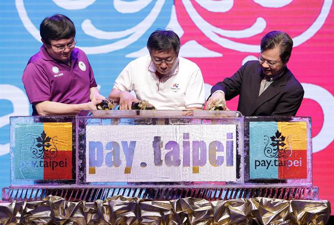 台北市长柯文哲(中)6月25日出席台北市政府智能支付平台“pay.taipei”上线记者会。(图片来源:台湾《中国时报》)