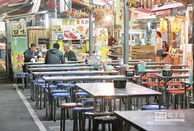 号称全台最大的高雄凯旋夜市,现只剩大约20摊,不少店家整排座位只有两三位客人。(图片来源:台湾《中国时报》)