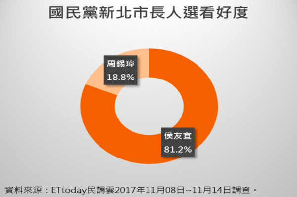 新北市长部分,现任副市长侯友宜以(81.2%)看好度遥遥领先前台北县长周锡玮(18.8%),且不论在哪个年龄层的族群都大幅领先,有望成功保下新北。