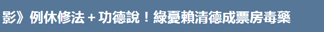 《中时电子报》发文指出,赖清德接任“行政院长”后,“赖神牌”几乎成民进党台柱,一度拉抬了蔡英文低迷的民调,但被称为“战斗院长”的赖清德最近因“功德说”被骂翻,不但民团表态以后都不投民进党,连自家“立委”也有杂音,曾参与“学运”的青年呛声说民进党为了“修法”成了一言堂。“绿委”坦言,“修法”对赖清德声望确实有影响。