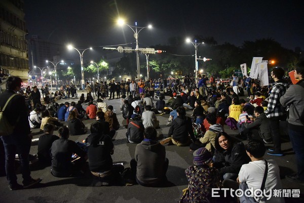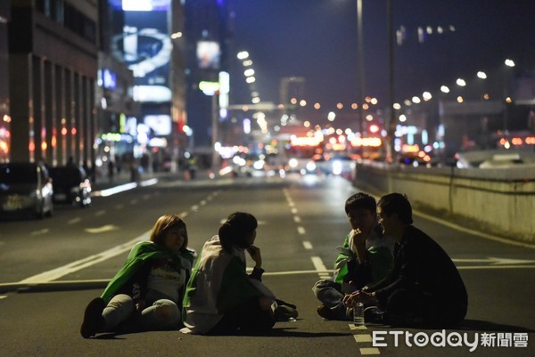 抗争者坐在马路上。(图片来源:台湾“东森新闻云”)
