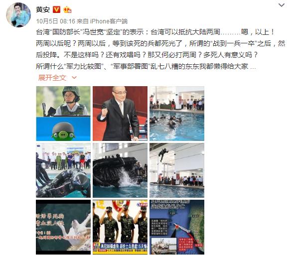 对此,向来关注两岸动态的黄安在微博上发表看法,他写道,两周以后,等到该死的兵都死光了,所谓的“战到一兵一卒”之后,然后投降。不是这样吗?还有戏唱吗?那又何必打两周?多死人有意义吗?