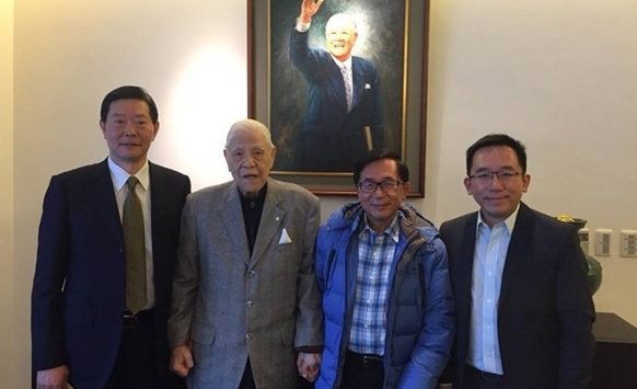 陈水扁在陈致中陪同下向李登辉祝寿。(图片来源:李登辉脸谱网)