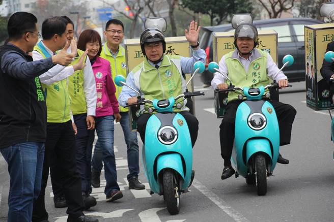 黄伟哲(右二)上街宣传空污政策。(图片来源:台湾《中时电子报》)