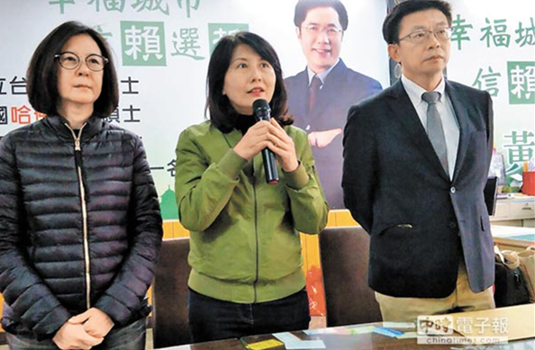 黄伟哲妻子刘育菁(中)。(图片来源:台湾《中时电子报》)