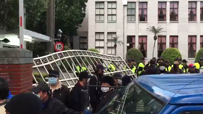 今天清晨5时50分,反年改团体搭乘游览车突袭“立法院”,现场聚集约50人冲撞“立法院”铁门,反年改团体坚持要交陈情书给“院长”苏嘉全“要让他知道,我们忍无可忍!”