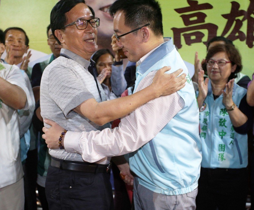 陈水扁日前参加儿子陈致中高市议员党内初选造势晚会,因上台送好彩头,被中监认定违反“不上台”规定。(图片来源:台湾《联合报》)