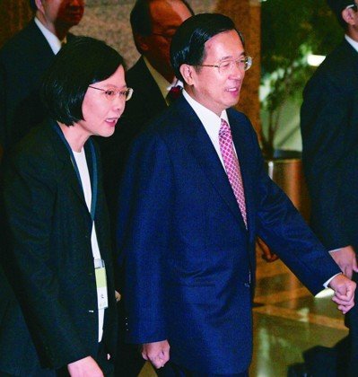 陈水扁(右)利用“新勇哥物语”放话,蔡英文亲上火线响应,两人隔空叫阵。(图片来源:台湾《联合报》)
