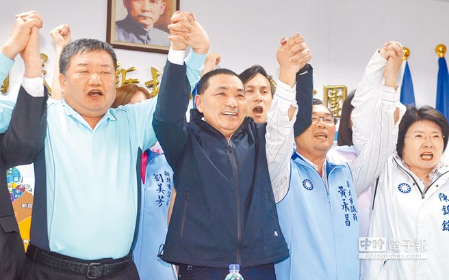 国民党中央6日公布新北市长初选民调结果,由前新北市副市长侯友宜(左二)胜出。(图片来源:台湾《中时电子报》)