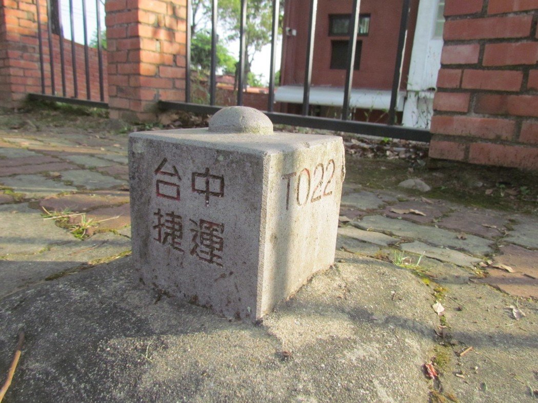 位在中兴新村光华消息围墙外一座“台中捷运”的测设桩,二十几年前就敲定了,但台中捷运延到南投到现在还是政见。(图片来源:台湾《联合报》)