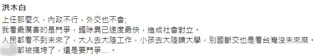 台湾网友直接嘘爆,指蔡废话连篇、满嘴谎言,讲半天啥也没做,台湾被搞成这样,很悲哀。如果每次“断交”都讲这些,下次就不用出来讲了,只想听蔡英文的离职感言。更有网友讽刺:“一个月断两个,猛”“会不会任内归零啊”“不道歉,还把执政无能推给大陆,好像不干她的事一样!千错万错都不是她的错!”“只会关起门来发脾气,剩下的什么都不会。”“不能忍耐,然后呢?民进党你们如此处理两岸关系,只会让台湾变得更落后、更贫穷、被边缘化,请民进党放过台湾人,我们只想跟全世界做朋友,不要再制造仇恨了。”