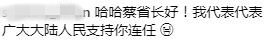 蔡英文这一冷不丁的发文确实引来了许多网友围观,其中不乏一些死忠粉给她留言打气,但较为引人注目的是,文章下涌入了许多大陆网友,纷纷向“蔡省长”问好。
