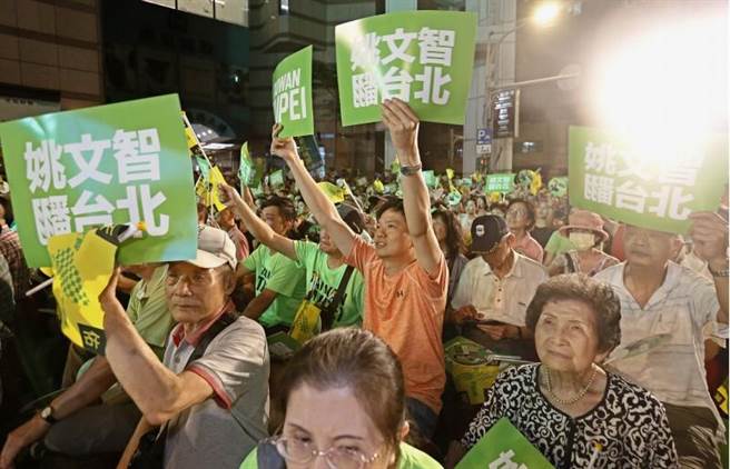 姚文智(中)23日晚间举办首场造势晚会。(图片来源:台湾《中时电子报》)