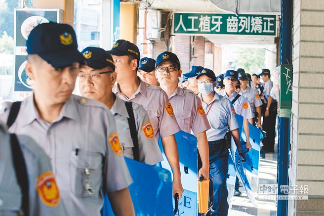 图为去年7月蔡英文在台中市林酒店参访时,警民对峙情形。(图片来源:台湾《联合报》)