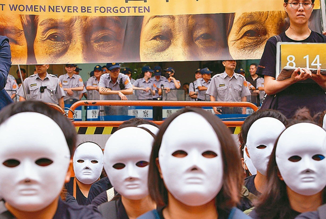 1937年12月抗战期间,日军攻陷南京,30万平民遭屠杀及强暴,日军嗣后在亚太各地设立慰安所,以欺骗、胁迫、绑架等方式强征占领区年轻妇女成为慰安妇供日军奸淫,受害妇女约20万到40万人,台湾至少有1200名妇女受害。