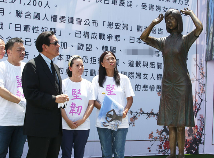 14日是国际慰安妇日,全台首座慰安妇铜像当天在台南揭幕,这座高约两米的铜像设在国民党台南市党部旁的空地上,对面是日据时期兴建的林百货。马英九出席揭幕式,并对民进党当局通过“促进转型正义条例”后,没有进一步向日本政府求偿表达遗憾。台湾“妇女救援基金会”昨日则前往“日本台湾交流协会”抗议,向日本讨公道。尴尬的是,台当局官方对此一片静默。
