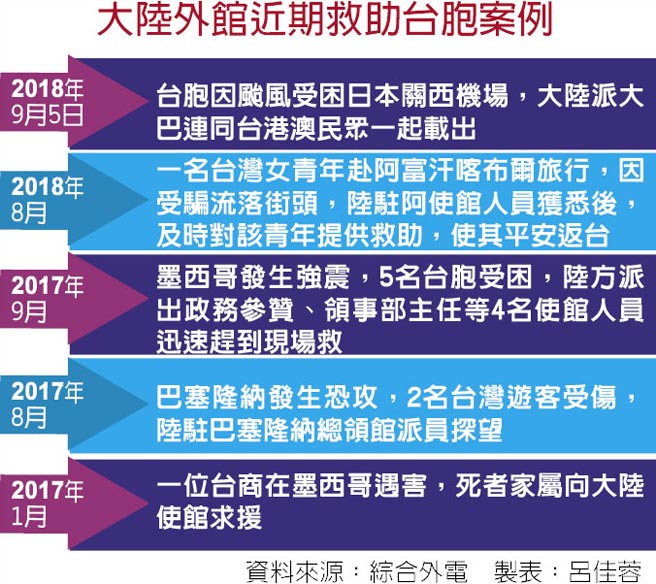 台媒整理我领事馆近期救助台胞案例。(图片来源:台湾“中时电子报”)