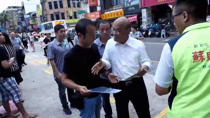 中国台湾网9月25日讯 民进党在野时发动过不少暴力事件,被网友封为“暴力始祖”。没想到执政后仍然不改这种作风,面对基层民众陈情,作为民进党新北市长参选人的苏贞昌,竟在众目睽睽之下大力拍对方肩膀、肚子,粗暴夺走其手中资料,全程眼神犀利,傲慢行径让陈情者当场被吓坏,直言感觉到被威吓。网友看过现场影片后也表示,“镜头里表现出来就是个黑道威胁人的行径嘴脸。”