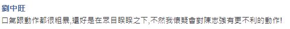 事发一日,陈志强说,自己冷静一天之后才能出来对外说明,家人很担心他的安危,甚至希望他不要再继续反深澳行动。他强调,自己是理性沟通,当下面对这样的状况让他直接被吓到、不知如何反应,对于理性陈情却失焦让他很遗憾。