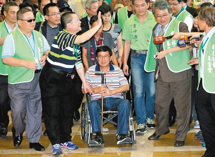 陈水扁刚开始出席公开场合时,都是以抖手、坐轮椅示众。民进党2016年重新执政后,扁不再顾及外界质疑“装病”眼光,频繁出席各场合。中监为他专门订立了“不上台、不演讲、不接受采访、不谈及政治”的四不原则,这即是蔡清祥所说的“红线”。