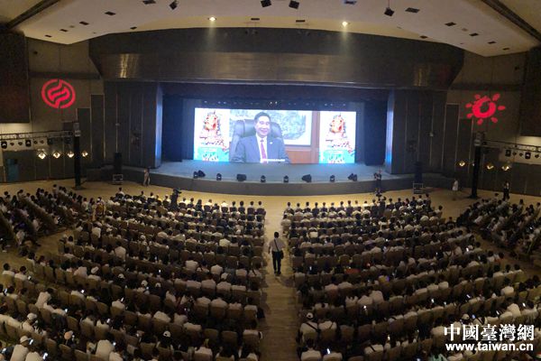 近千名台胞青年参加夏令营开营仪式并接受全国台联会长黄志贤视频祝福。(全国台联 易靖茗 摄)