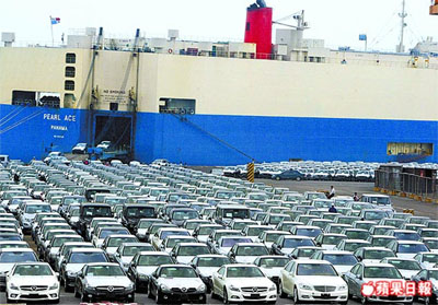 载运906辆欧系高级车的希珍号汽车轮,昨早7时30分抵台中港,包括417辆奔驰,483辆宝马与MINI Cooper,6辆保时捷名车。台中县报关商业同业公会理事长林阿坚说:“这批车子仅进口关税,估算就要50亿元。”