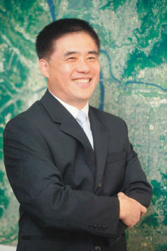 台北市长郝龙斌极力促成下,松山、虹桥机场今天对飞,郝龙斌搭首航班机飞抵上海世博。图片来源:台湾《联合报》