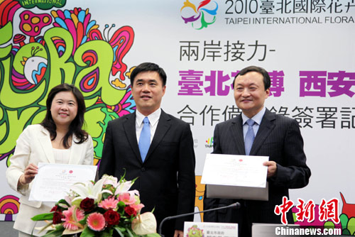 “两岸接力——台北花博西安世园合作备忘录”22日下午在此间签署,两市约定将共同在文化与花艺展开密切的交流与合作,在两个博览会期间互相参展,并协助对方举办“城市文化日”或“文化周”等活动,以传扬绿色理念。