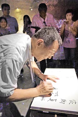 林毅夫最后签名留念时写下“家乡真好”几个字。记者问他看台湾馆后是不是更想家了,林毅夫默然停顿一会儿,眼眶泛红,久久说不出话来。(中国台湾网 陈佳慧)