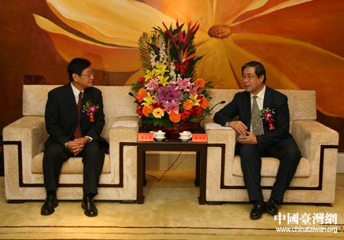 天津市委常委、副市长崔津渡会见台湾国泰人寿保险股份有限公司总经理张发得。(图片来源:天津市台办)