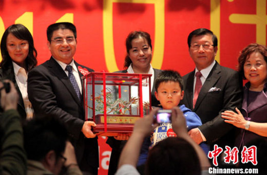 1月27日下午,有“大陆首善”之称的陈光标与数十位大陆企业家,应邀参加新竹县政府举办的岁末送暖活动。中新社记者 董会峰 摄