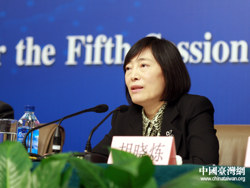 十一届全国人大五次会议在梅地亚中心举行记者会,中国人民银行副行长胡晓炼出席记者会并就两岸货币清算等问题回答记者提问。(中国台湾网 王伟 摄)