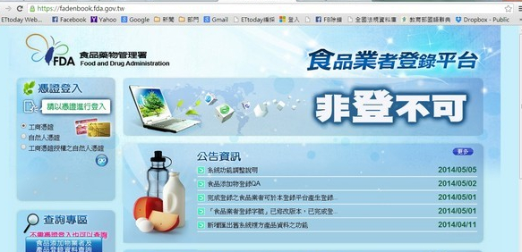 台湾历经塑化剂、混充油等食安问题之后,“食药署”今年4月24日公告“食品添加物业者应办理登录”,并要求食品添加物制造、加工或输入业者,自2014年5月1日起,应完成登录,始得制造、加工或输入。