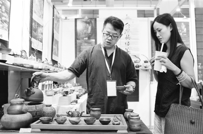 现场专门设置了包括知名美食、传统铁壶、台湾民窑等多种商品在内的台湾特色产品展,吸引了不少市民选购。
