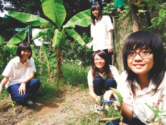 高雄县凤西中学生4名女学生,将校园空地打造成货真价实的开心农场,经营一年多,因有机耕作获奖。(来源:台湾《联合报》)