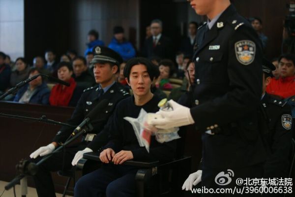 2015年1月9日上午9时30分,北京市东城区人民法院第二法庭将依法公开开庭审理陈祖明(别名:房祖名)容留他人吸毒案。去年12月22日,东城区人民检察院以容留他人吸毒罪对著名影星成龙之子房祖名(原名:陈祖明)提起公诉。图为庭审现场。来自北京市东城区人民法院官方微博