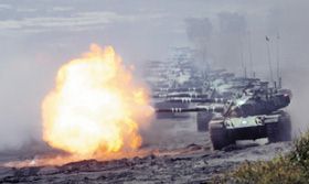 今年7月,台军“汉光22号”演习,坦克以火炮射击海面目标,实施反登陆操演。但这些作战计划,最近因台陆军八军团军官涉嫌泄漏防务机密案,而被发现很可能已流入诈骗集团手中。(图片来源:台湾《联合报》)