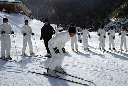 来自特战部队的受训学员日前报到后,随即展开为期四周的高寒地训练,由于适逢近年来难得一遇的寒流,合欢山上一片银白,也让这次的高寒地训练,真正名符其实。训练期间学员将学习滑雪、高寒地地障超越、工事构筑、野战求生、自救互救、救援训练、特种作战综合实作等各项高寒地训练。