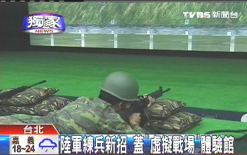 据台湾TVBS报道,为了让官兵体会战场真实情况,台陆军斥资千万预算打造一座全新虚拟战场体验馆。体验馆命名为“战场抗压训练室”,概念和“生存游戏”相当接近,官兵在体验馆中,必须穿戴有感应器的头盔和服装,只要被敌军武力攻击,就会被判定受伤或是阵亡,台军希望藉由新的训练模式,增加官兵的战场反应力。