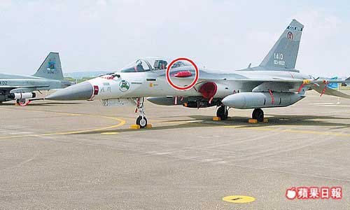 台空军台南联队去年11月发生IDF战机飞行员误触电门,击发25发机炮,红圈处为机炮位置。图片来源:台湾《苹果日报》