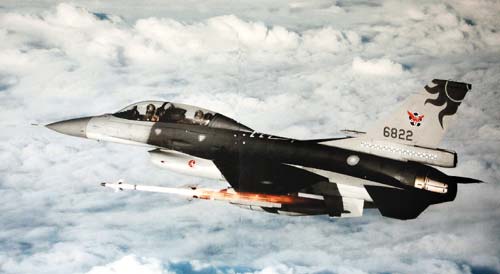 据台湾《联合报》报道,台湾空军花莲基地两架F16战机日前演习射击鱼叉飞弹。