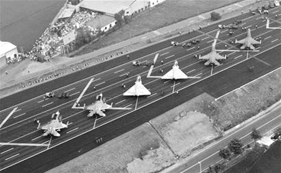 这些作为战备跑道的高速路段,其路面都装有特殊灯光标志,路旁没有障碍物,公路中间的分隔带底部插座盖弹起就是跑道灯。每条跑道长均为2400米,全用水泥浇灌,可起降包括战斗机、运输机在内的各型军用飞机。