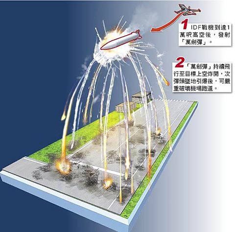 林郁方发布新闻稿表示,“万剑”系统内装有上百枚次弹头,具远距遥攻能力,除可用于破坏、瘫痪机场跑道外,对部队集结区、港口装卸区、飞弹及雷达阵地等,也有极大杀伤力。
