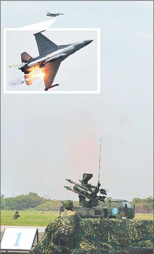 资料图:台湾空军以车载剑一防空导弹与20机炮,追瞄F-16战机。