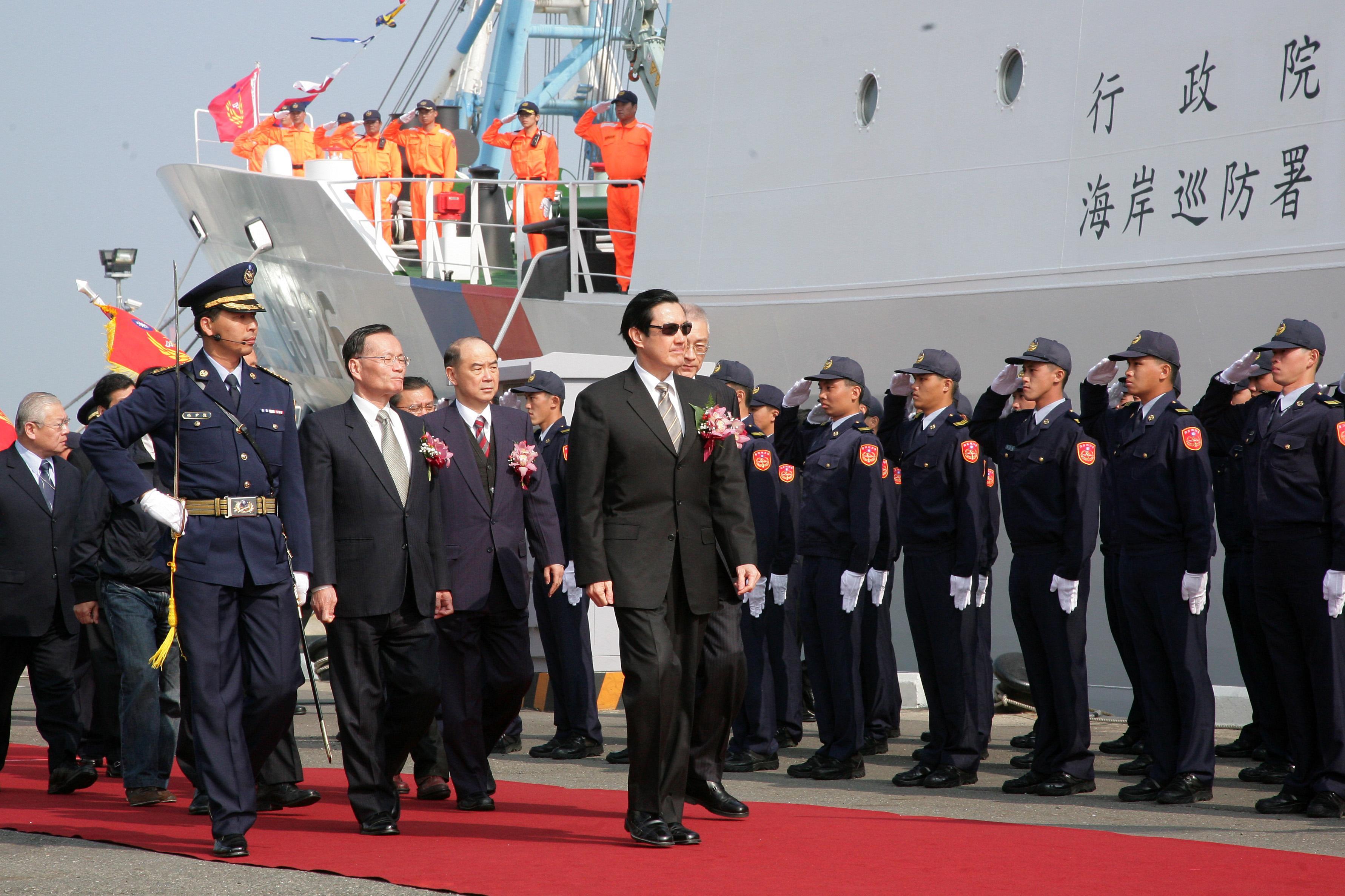台湾“海巡署”新建2000吨级巡防舰“台南舰”(编号CG-126)及1000吨级巡护船“巡护七号”,1月26日上午在高雄海巡队码头举行成军典礼。马英九主持时表示,二艘船舰维护主权及捍卫渔权能量,促进区域兴盛与繁荣,也缔造了台海的和平与安定。