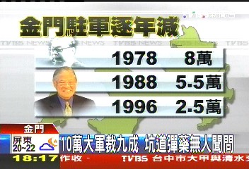 台媒称,或许是“巧妇难为无米之炊”,因为金门驻军从全盛时期号称的10万大军,到蒋经国时期裁减到8万,再到李登辉时期砍到5.5万人,2007年缩减到2.5万人,现在金门的守军只剩1万不到。